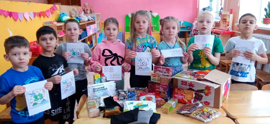 Ребята, педагоги, родители школьников этого образовательного учреждения передали в качестве гуманитарной помощи 22 индивидуальных пакета с подарками к празднику, несколько крупных коробок с продуктами длительного хранения (макаронные изделия, крупы, печенье) и газовыми баллонами для полевых условий, а также написали 77 трогательных писем и открыток с пожеланиями.