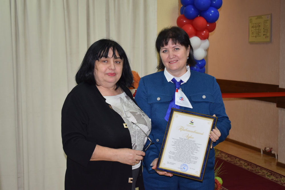 Поздравила и от себя лично, и от имени главы Администрации Целинского района Оксаны Косенко со столь значимым событием не только для нашего посёлка, но и для всего Целинского района как пенсионеров, так и работников клиентской службы заместитель главы районной администрации Манана Хорошилова: