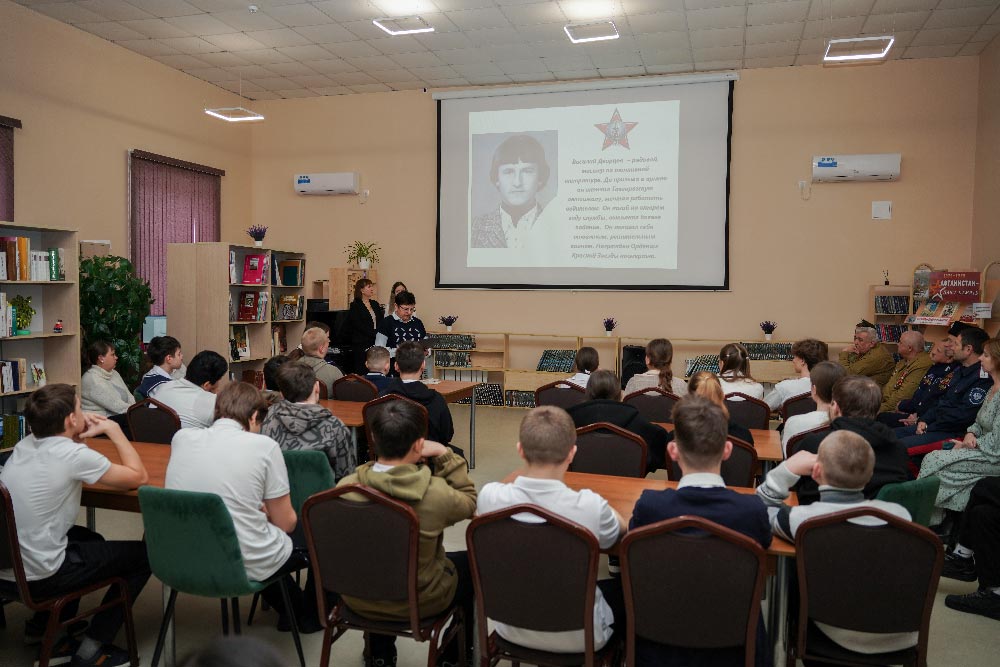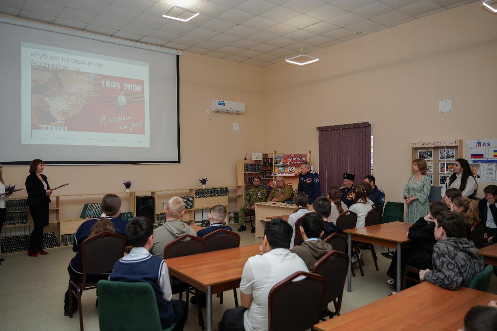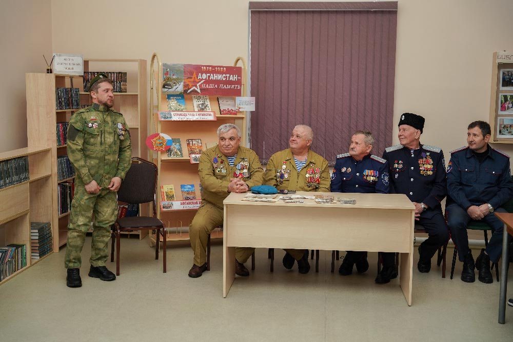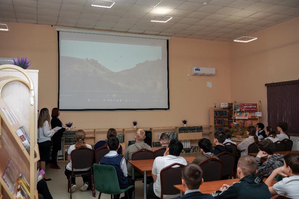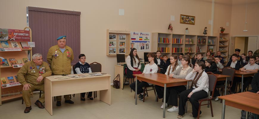 13 февраля на патриотическую встречу со школьниками в Центральной районной библиотеке были приглашены и те, кто принимал участие в Афганской войне, и те, кто выполнял конституционный долг в Чечне и те, кто принимал участие в специальной военной операции на Украине.