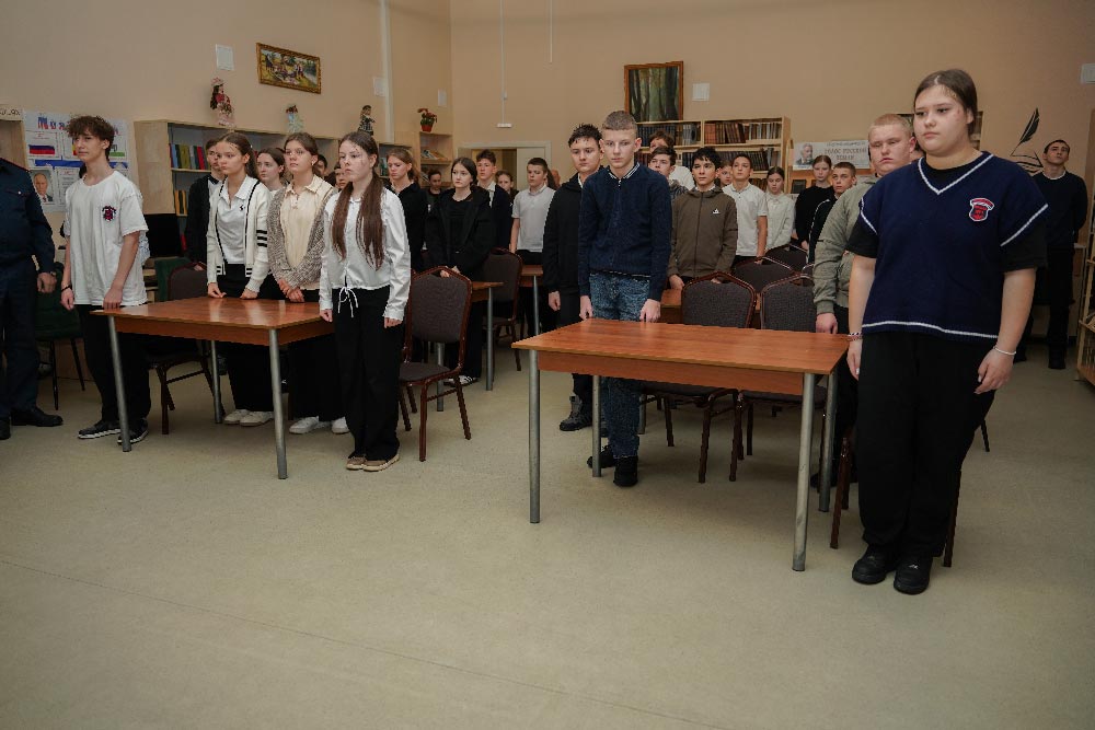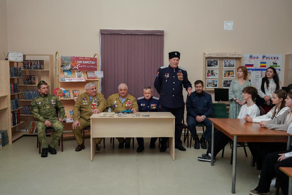 Перед ребятами выступили воины-интернационалисты: Виктор Кузнецов, Мураддин Хуршудов, Сергей Батлуков, участник чеченских войн Андрей Буцкий, ветеран СВО Алексей Сметанин.