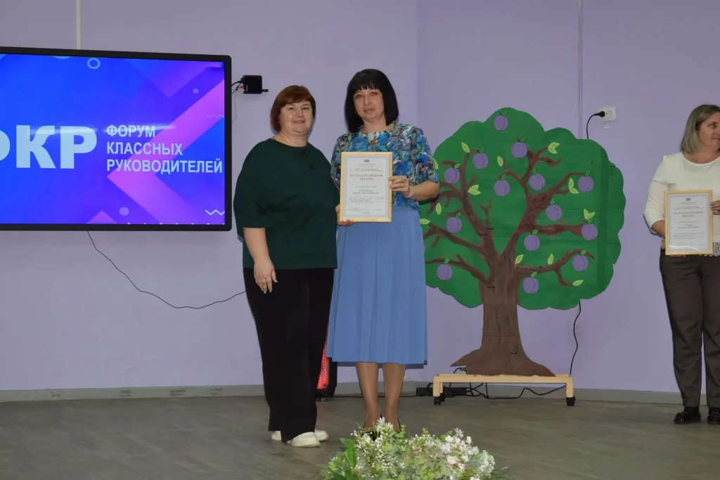 С приветственным словом к участникам обратилась заведующий отделом образования Администрации Целинского района Екатерина Тонкошкур. После выступления ей было вручено Благодарственное письмо от Ассоциации Форума классных руководителей и кураторов Дона.