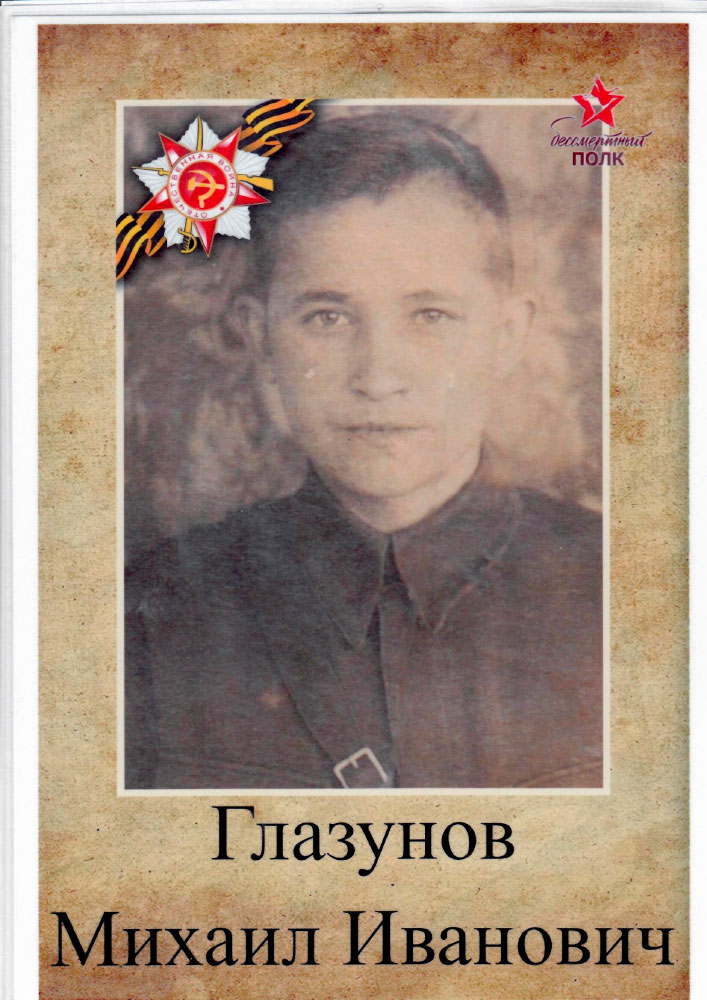 Мой отец, Михаил Иванович Глазунов, 21 ноября 1926 года рождения, был призван на фронт в мае 1943 года.