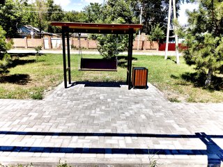 В рамках проекта выполнены работы по укладке тротуарной плитки с асфальтобетонным покрытием; установке качелей и урн.