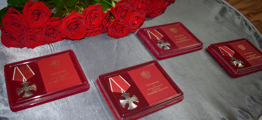 В Целинском РДК состоялась торжественная церемония передачи орденов Мужества родным четырех целинцев, геройски погибших в ходе специальной военной операции.