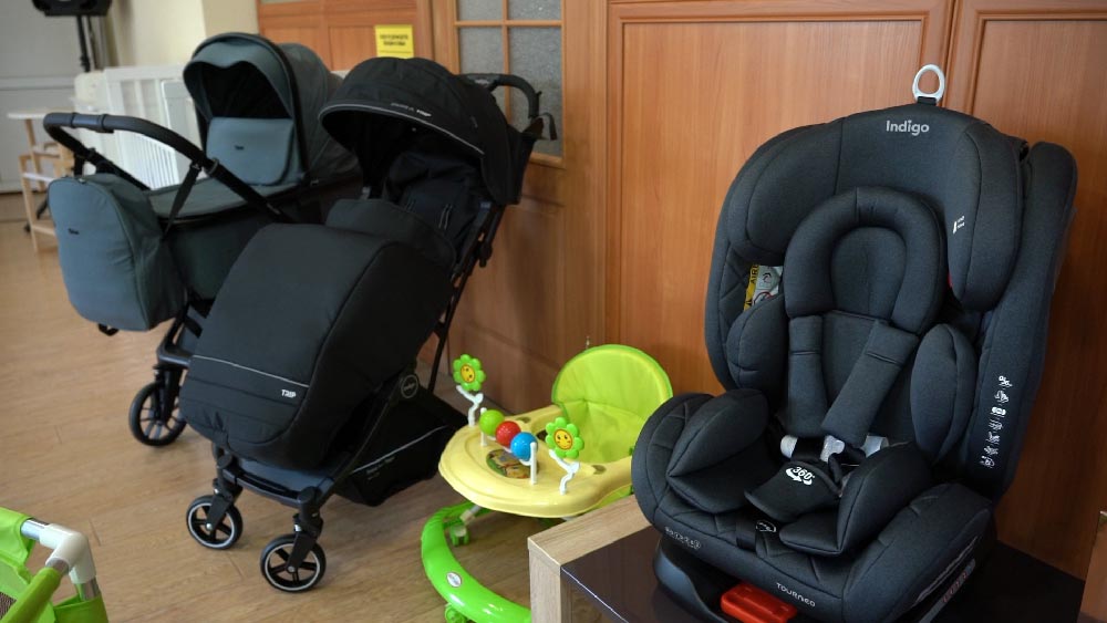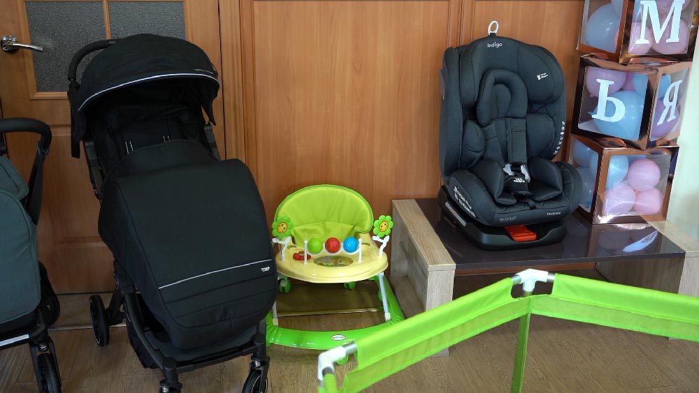 Выставка детских рисунков, баннер с шарами и фото-зона встречали гостей мероприятия. Также были представлены коляски, пеленальные столики, ходунки и другие предметы первой необходимости для семей, где появился новорожденный.