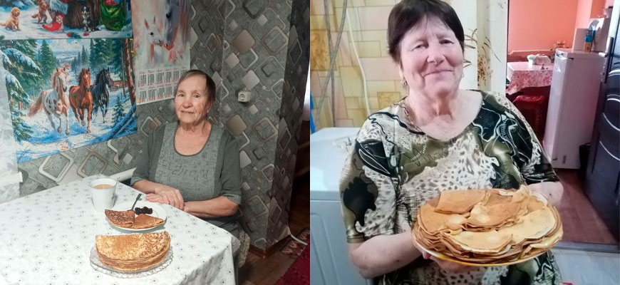 Второй день социальные работники района радуют своих подопечных главным символом праздника — румяными и горячими блинами.