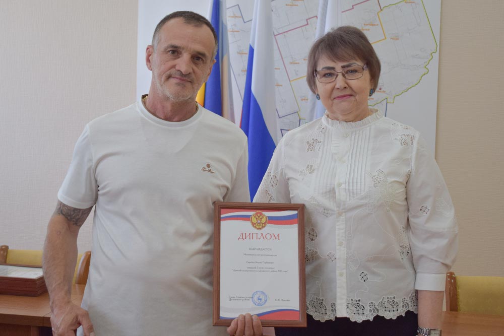 Людмила Бурлак обнародовала итоги муниципального конкурса и вручила награды победителям Первое место занял индивидуальный предприниматель глава крестьянского (фермерского) хозяйства Александр Соннов (Ольшанское сельское поселение), второе место у предпринимателя Зограба Серобяна (Целинское с. п.), третье место отдано предпринимателю Сафии Нуфаровой (Лопанское с. п.).