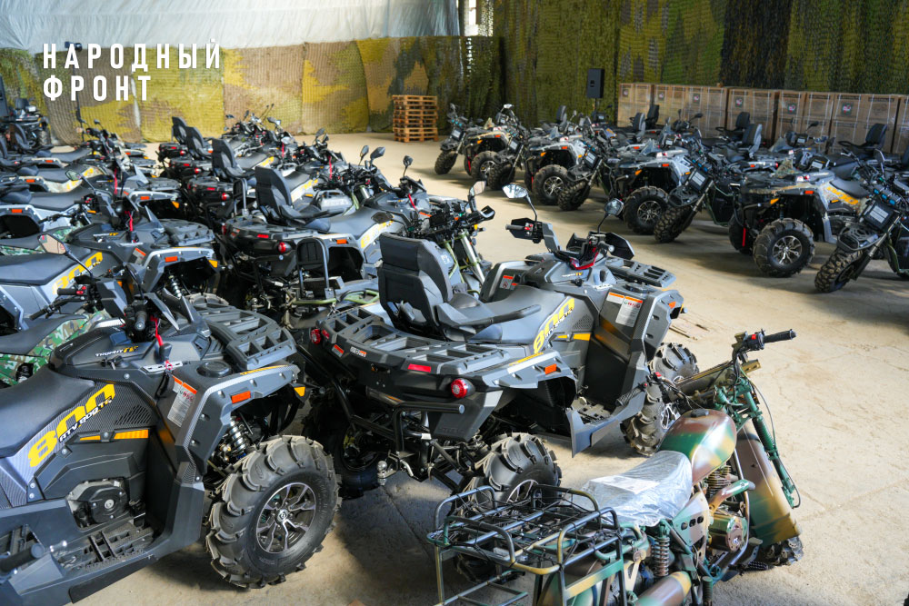 Всего бойцы получили 50 электромотоциклов, 50 квадроциклов и 10 УАЗов “Профи”. Также военнослужащим привезли оборудование для связи, 100 тепловизионных прицелов, а также мотопомпы для откачки воды из укрытий.
