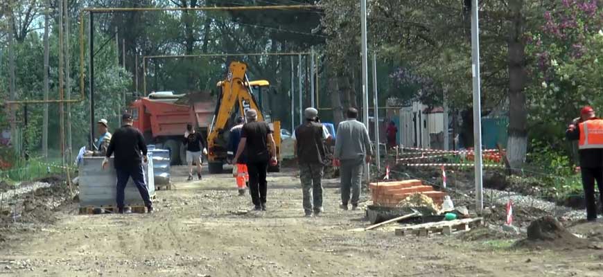 В Юго-восточном микрорайоне п.Целина по улице Лазоревая полным ходом идет устройство поребриков для строительства тротуаров и далее подрядная организация приступит к строительству автомобильной дороги.