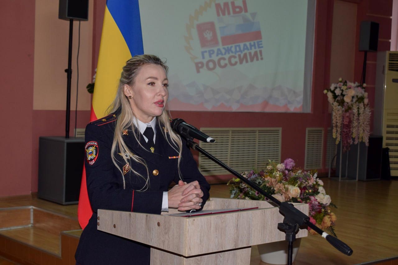Этот главный документ в жизни каждого человека вручили ребятам, ставшим с этого дня полноценными гражданами России, заместитель главы администрации района Манана Хорошилова, начальник отделения по вопросам миграции ОМВД России по Целинскому району Юлия Щеглова и участник специальной военной операции Сергей Портнов.