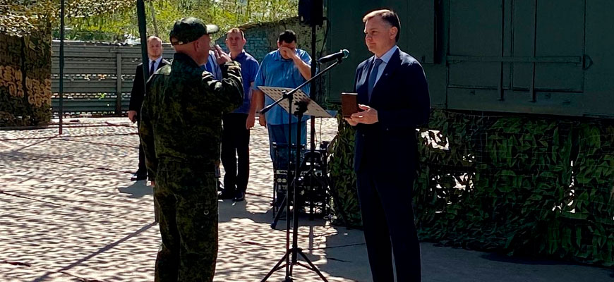 Вместе с командующим Владимиром Куценко Юрий Слюсарь вручил награды и передал средства радиоэлектронной борьбы.